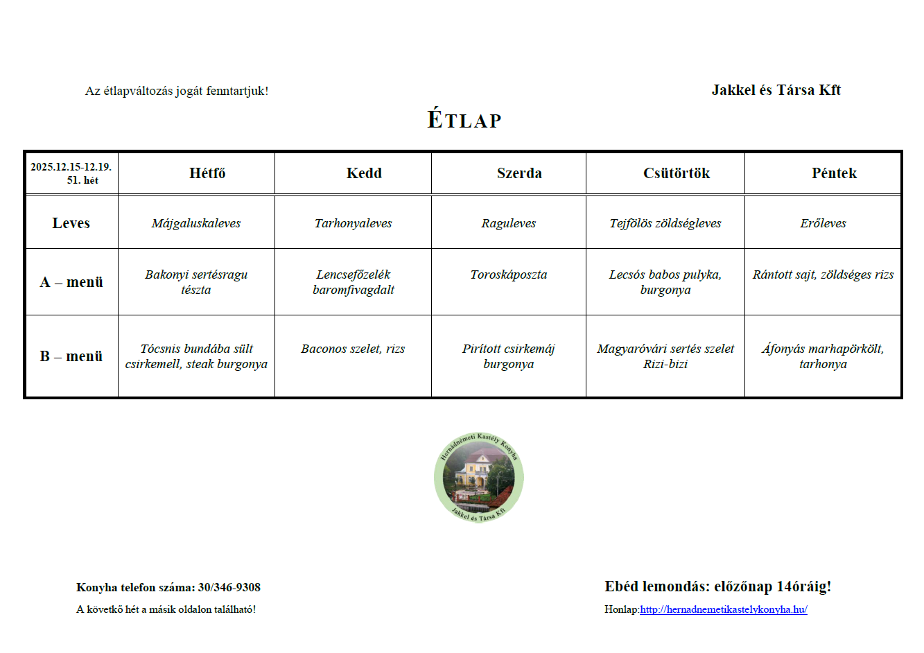 A napi menü általában 10-12 óra között kerül kiszállításra!